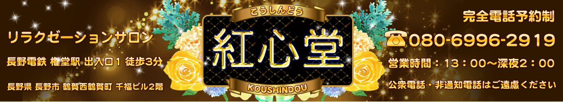 長野 リラクゼーションサロン マッサージ 指圧 アロマオイルリンパマッサージ メンズエステ 【紅心堂】(こうしんどう) 権堂駅徒歩3分