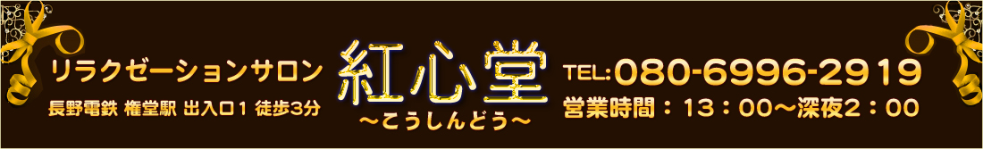 長野 リラクゼーションサロン マッサージ 指圧 アロマオイルリンパマッサージ メンズエステ 【紅心堂】(こうしんどう) 権堂駅徒歩3分